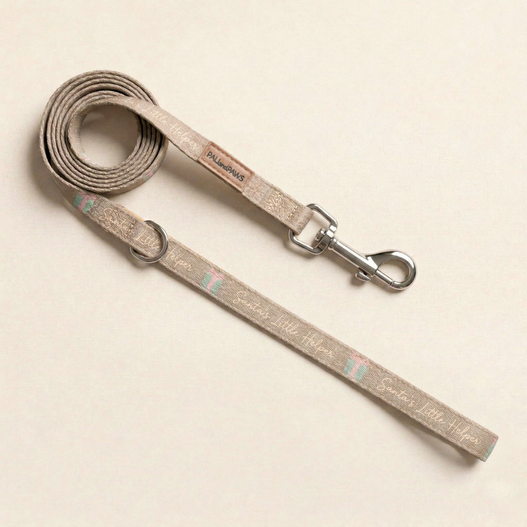 Correa para perro de poliéster con estampado navideño.