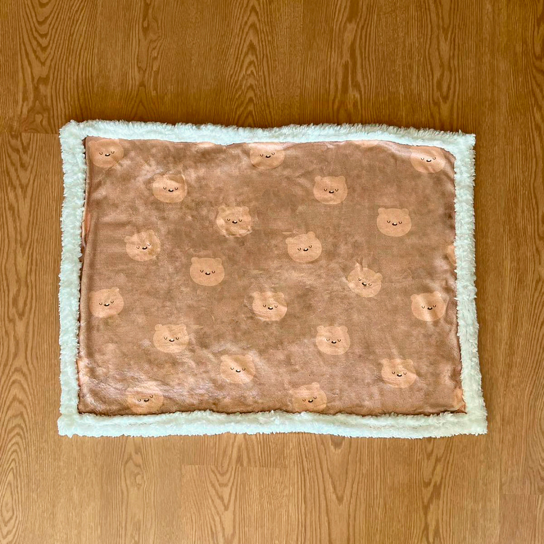 Manta con estampado de oso. Realizada en franela y vellón.